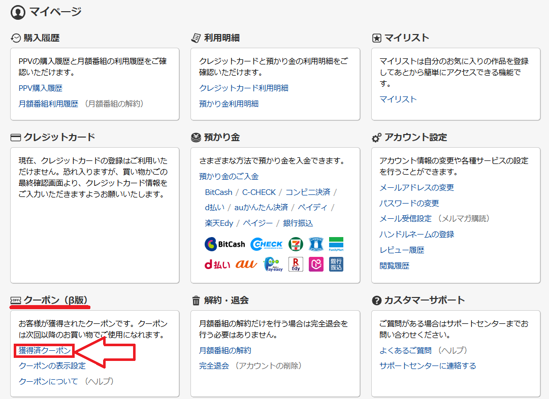 また、自分が獲得したクーポンは、マイページからクーポンの確認ページへアクセスすることができます。