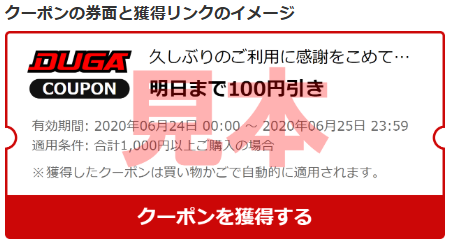 DUGAのクーポンは、表示されたら自分で獲得する形です