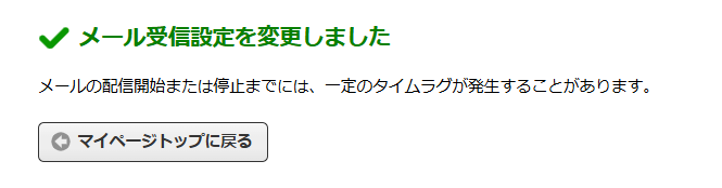 やることは簡単ですし、単純です。気になる項目を見つけたら、受け取るかどうかを選んで”変更する”をクリックするだけ。そうすると、以下の画面が表示され、受信設定の変更が完了します。